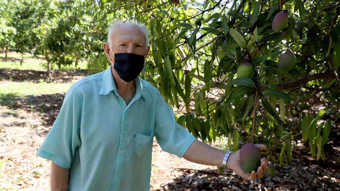 Agricultura familiar que movimenta as propriedades de Fernando Vitorio Narante, de 41 anos. Ele administra diferentes áreas que, somadas, abastecem o Paraná por meio de 2.300 pés de manga (tommy, palmer e espada). “Estou há dez anos mexendo com a manga, sempre baseada na agricultura familiar, com ajuda dos filhos. Somente na colheita que chamamos de seis a sete pessoas para ajudar”, afirma.