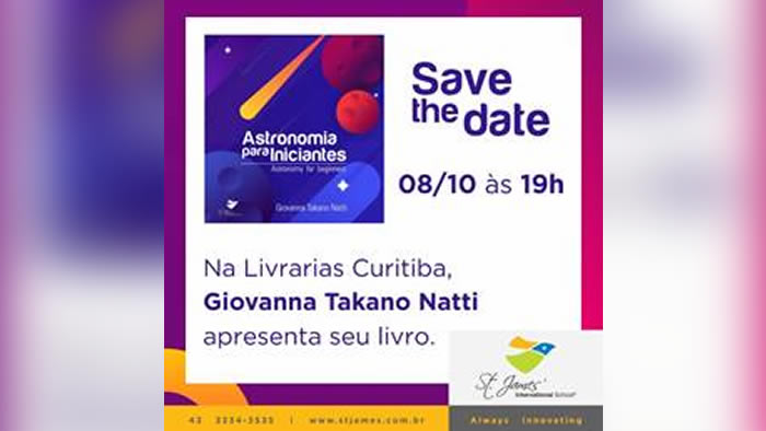 Apaixonada por temas ligados à Astronomia, Giovanna ampliou seu repertório ministrando aulas para crianças da Casa Acolhedora, na região oeste de Londrina. A vivência de um ano de pesquisas e interação com os pequenos gerou todo o conteúdo para a publicação do livro que levou o nome de ‘Astronomia para Iniciantes’, com versão em inglês e português, e ilustrações que estimulam o interesse pela leitura.