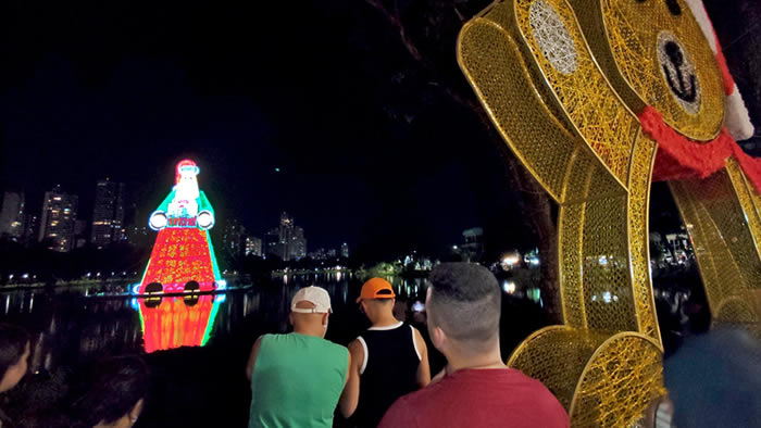 No intervalo entre os dois primeiros shows da noite, dos grupos Bona Trio e Black Divas, e o anúncio do Guinness, a Prefeitura programou um show de luzes na estrutura do Papai Noel, que vai ficar apagado por um tempo.