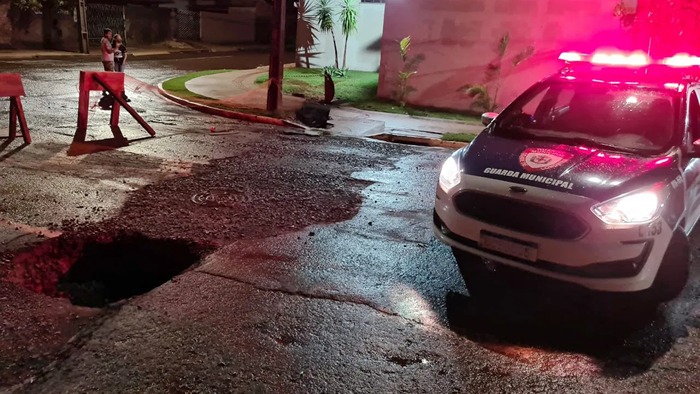 Uma equipe da Guarda Municipal (GM) de Londrina, representando a Coordenadoria Municipal de Proteção e Defesa Civil (COMPDEC), atendeu ocorrência de possível deslizamento no jardim Leonor, Zona Oeste da cidade, na noite desta quarta-feira (16). Os agentes sinalizaram o trânsito com fita zebrada e cavaletes, impedindo que veículos e pessoas passassem pela via. No endereço há uma obra em andamento e, por conta das chuvas, a terra cedeu, abrindo um buraco no meio da pista.