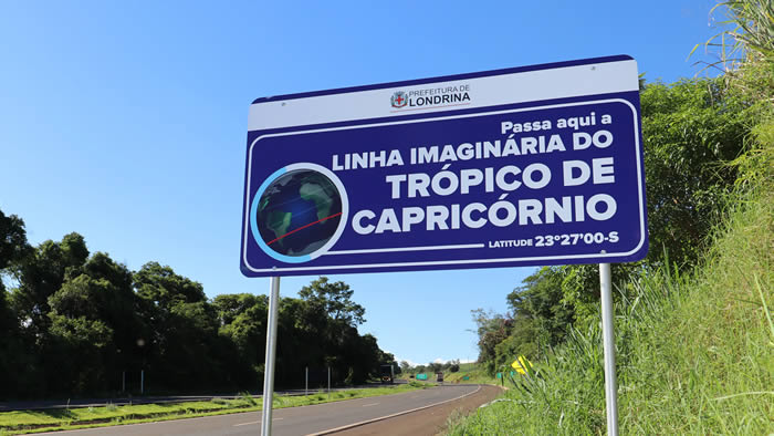 Uma importante linha geográfica imaginária que atravessa Londrina, o Trópico de Capricórnio, agora está devidamente sinalizada no município. Por meio de uma indicação legislativa da vereadora Professora Sonia Gimenez (PSB), e em parceria com o departamento de Geociências da Universidade Estadual de Londrina (UEL), a Prefeitura de Londrina realizou a confecção e instalação de três placas em pontos por onde o Trópico passa.