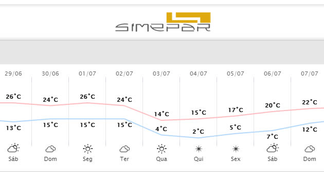 Segundo aponta o Sistema Meteorológico do Paraná (Simepar), Londrina terá uma nova queda de temperatura na semana que vem.
