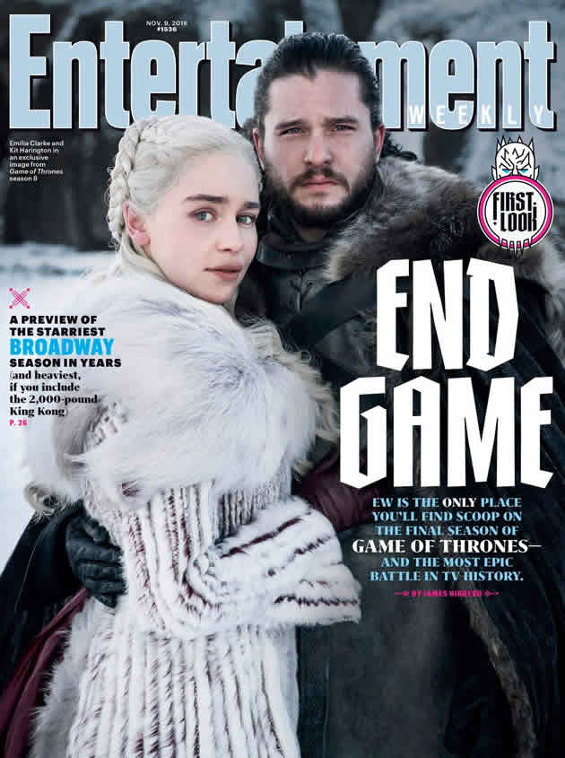 A última temporada de Game of thrones está cada vez mais real. Nesta quinta-feira (1/11), a revista norte-americana Entertainment Weeklyapresentou a primeira foto oficial da produção. Daenerys Targaryen (Emilia Clarke) e Jon Snow (Kit Harington) estampam a imagem do épico final.