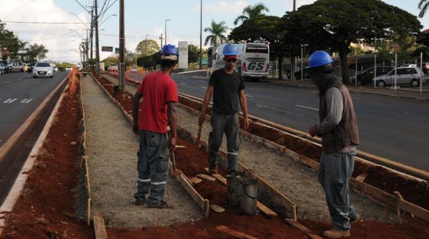 Operários trabalham na construção da ciclovia na Av. Dez de Dezembro – Foto: Folha