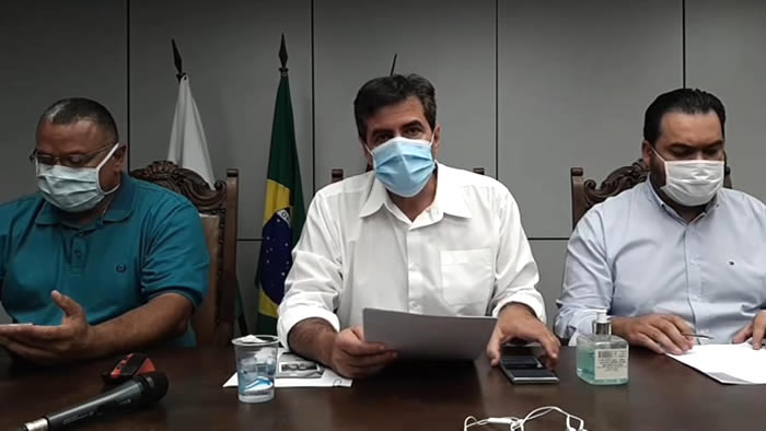 O prefeito de Londrina, Marcelo Belinati (PP) realiza uma entrevista coletiva nesta quarta-feira (09) juntamente com o secretário de Saúde Felippe Machado e o Coordenador da Defesa Social, tenente-coronel Pedro Ramos, para anunciar novas medidas restritivas contra o avanço do novo coronavírus na cidade.