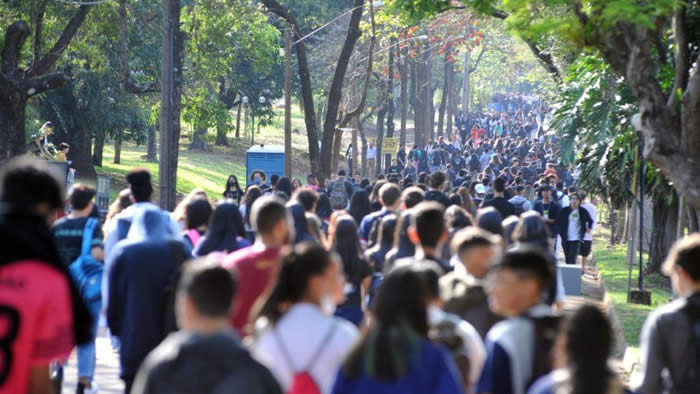 Em um emocionante momento de reencontro entre os estudantes do Ensino Médio das regiões Norte do Paraná e Sul de São Paulo com o Campus da Universidade Estadual de Londrina (UEL), a 10ª Feira das Profissões UEL 2022 registrou a presença de ao menos 12 mil jovens logo nas primeiras horas da manhã desta sexta-feira (2). Todos os centros de ensino, laboratórios multiusuários e demais estruturas e serviços prestados pela instituição foram rapidamente visitados pelos alunos, que também puderam interagir com estudantes de graduação dos 52 cursos. Ao todo, 19,6 mil secundaristas de 274 escolas foram inscritos para a Feira ao longo de todo o dia, o maior número dentre todas as edições do evento.