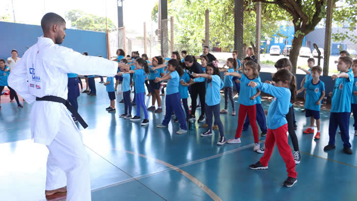 As aulas de caratê para 300 alunos da rede municipal serão conduzidas pela Associação Dojo Oguido, selecionada através de um edital de Chamamento Público que a SME publicou no segundo semestre de 2022. E, além da E.M. Moacyr Camargo Martins, o projeto também estará nas escolas municipais Padre Anchieta, Ruth Lemos, Carlos Dietz, Eurides Cunha, e Melvin Jones.