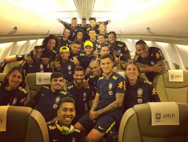 Jogadores da Seleção no avião – Foto: Twitter Fernandinho