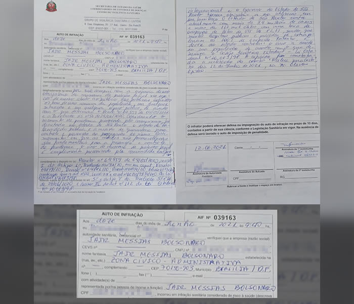 Além do presidente, o deputado federal Eduardo Bolsonaro (PSL) e o Ministro da Infraestrutura Tarcísio Gomes também receberam autuações no valor de R$ 552,71 pelo não uso do equipamento de proteção.