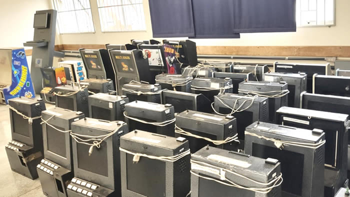 Nesta quinta (17), a Universidade Estadual de Londrina (UEL) recebeu 39 máquinas caça-níqueis apreendidas pela 4ª Companhia Independente da Polícia Militar (CIPM). Os equipamentos eram usados em bingos clandestinos e somam-se a outras cinco máquinas já recebidas pela UEL no ano passado, como explica o diretor do Centro de Ciências Exatas (CCE), Silvano Cesar da Costa.