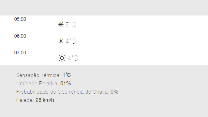 A frente fria que avança pelo Paraná derrubou as temperaturas. De acordo com dados do Sistema de Tecnologia e Monitoramento Ambiental (Simepar), Londrina e região devem enfrentar uma queda brusca de temperatura com previsão mínima de apenas 4ºC nesta segunda-feira (13). A sensação térmica poderá chegar a 1ºC em algumas localidades por volta das 6 e 7 horas da manhã.