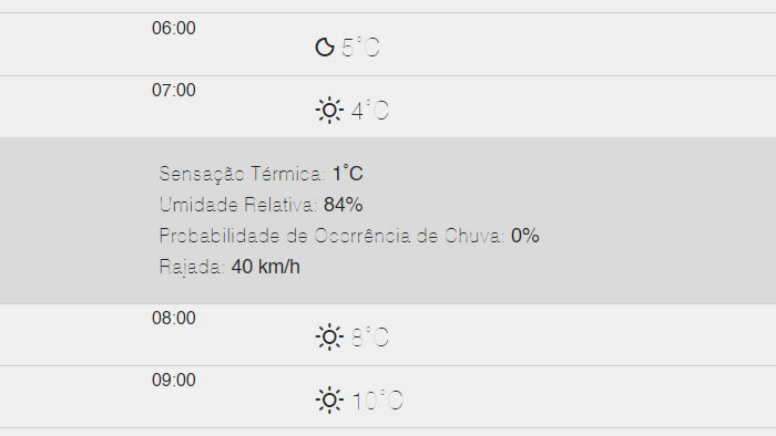 Segundo a previsão, os termômetros devem cair ainda mais na quarta-feira (18), com possibilidade de 3ºC e chance de geadas na área rural do município. A média mínima prevista para a semana é apenas 5,2ºC, com temperaturas máximas que não passam da casa de 20ºC.
