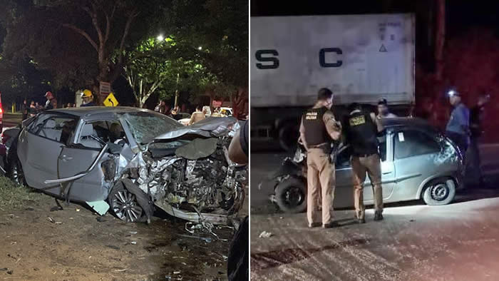 De acordo com a Polícia Rodoviária Estadual (PRE), um homem de 29 anos que conduzia um Toyota Corolla colidiu contra um Chevrolet Corsa. No local da tragédia morreram a mulher, de 32 anos, passageira do Corolla, além dois ocupantes do Corsa, um homem de 44 anos e o passageiro, ainda não identificado, também morreram.